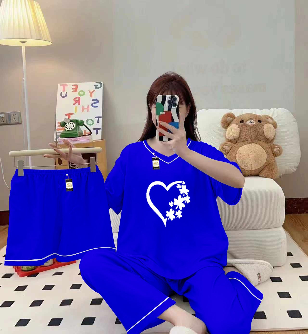 3-Piece Cami Nightwear Set for Women with Elegant White Borders Sky Blue women Heart