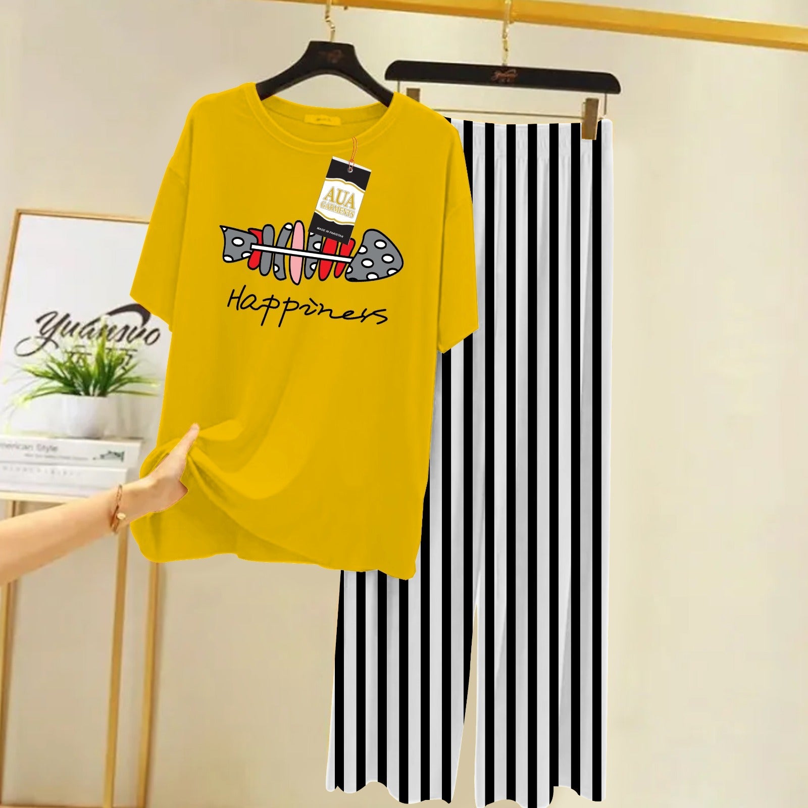 Yellow Color Women Happines Printed Night Suit with Luxurious Lining Pajamas - Stylish Sleepwear Set For Women By Aua garments (002)